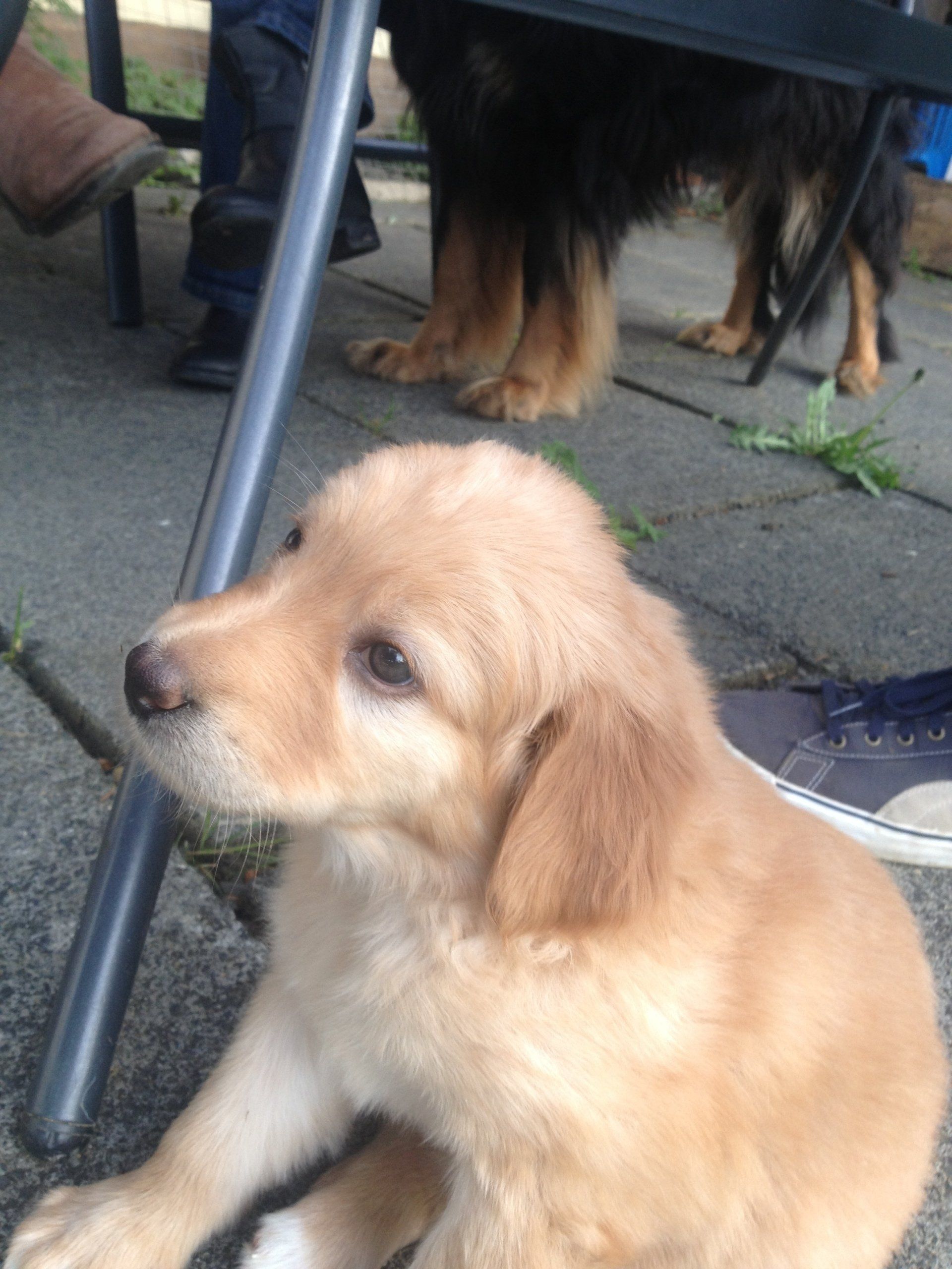 Da war der Keks noch bei seiner Mama in der Eifel. Es war Liebe auf den ersten Blick und diesen Blick beherrscht er auch heute noch.