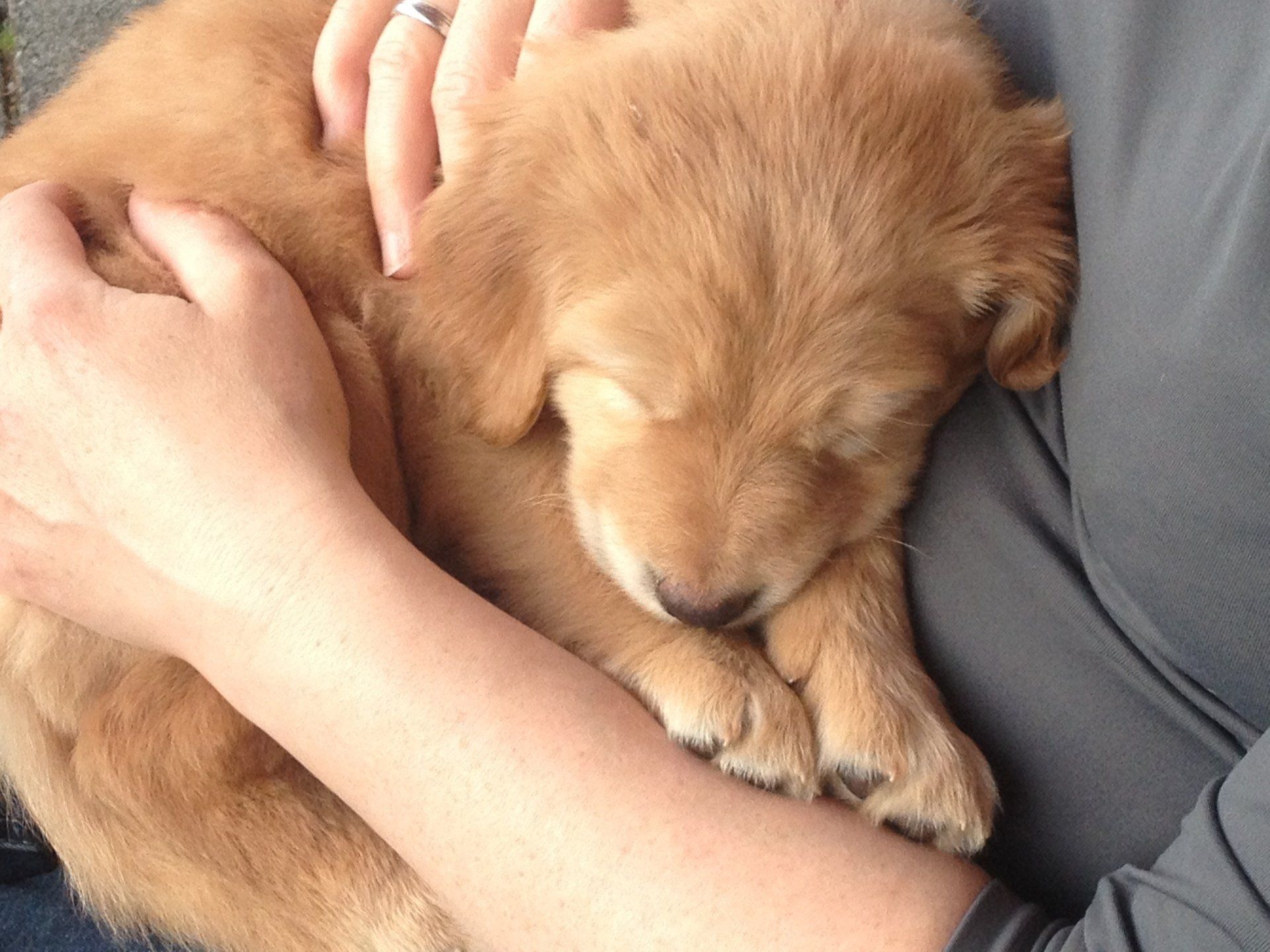 Beim ersten Besuch schläft er auf dem Arm ein.